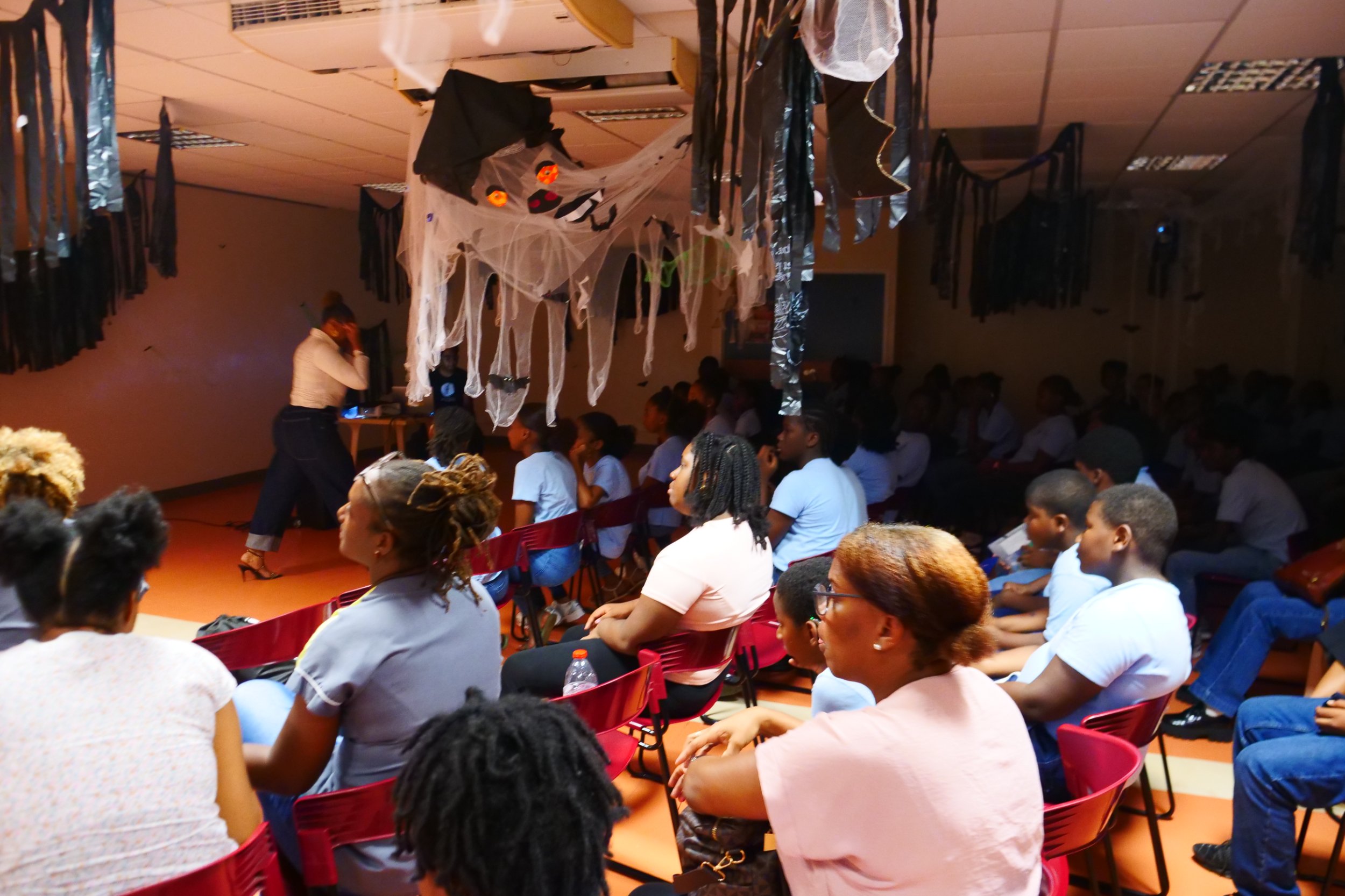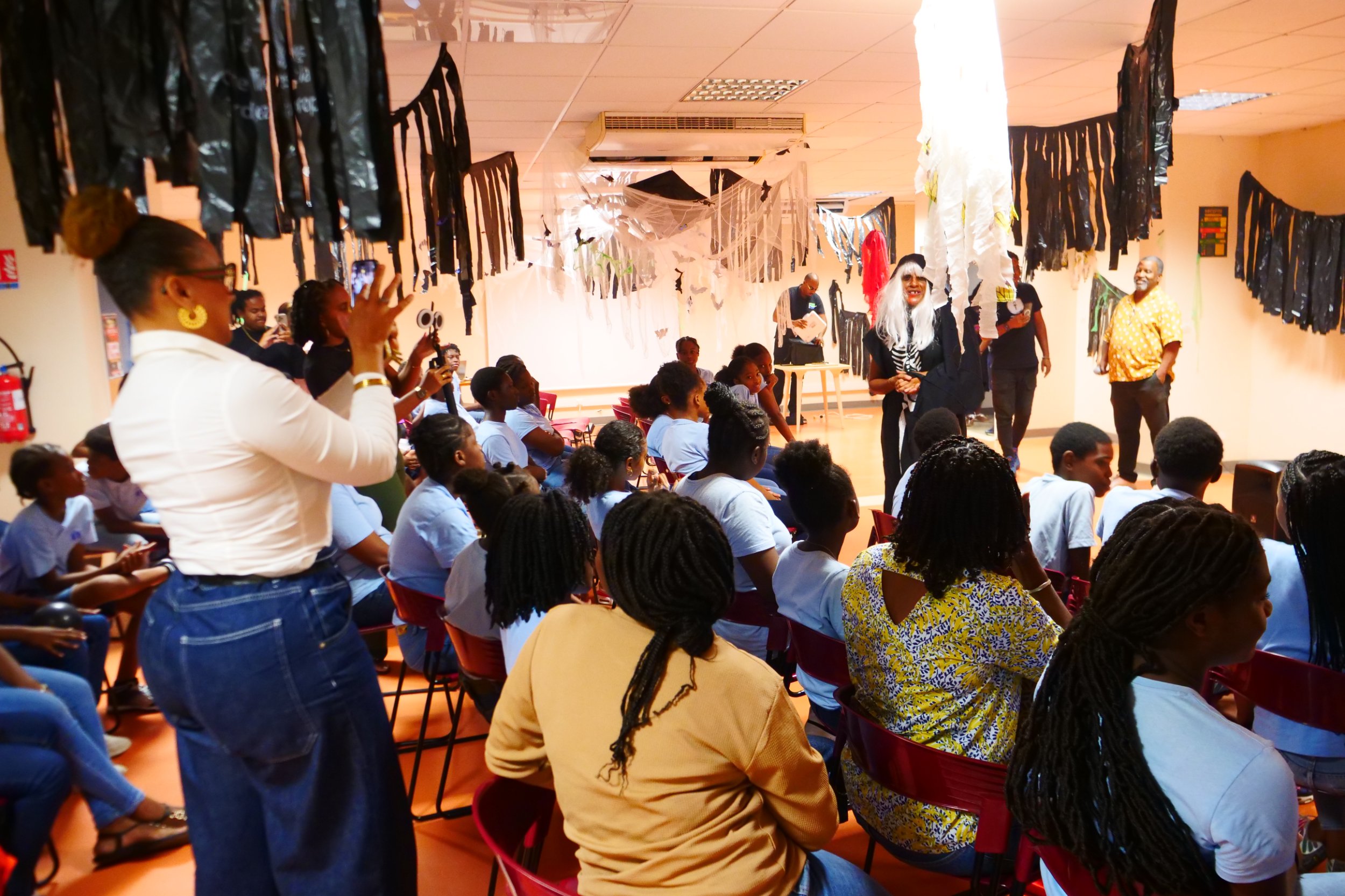 Dans le cadre du mois de la fête des défunts, la Médiathèque Ernest J. Pépin a proposé aux élèves un spectacle original et passionnant : “Bèt a Man Ibè – L’Effroi des Zombis”, présenté par le conteur Jean ARCHELON.