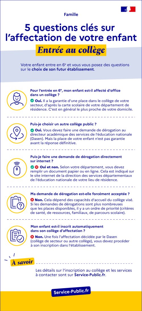 Affectation d'un enfant au collège : réponses à 5 questions clés (infographie)
