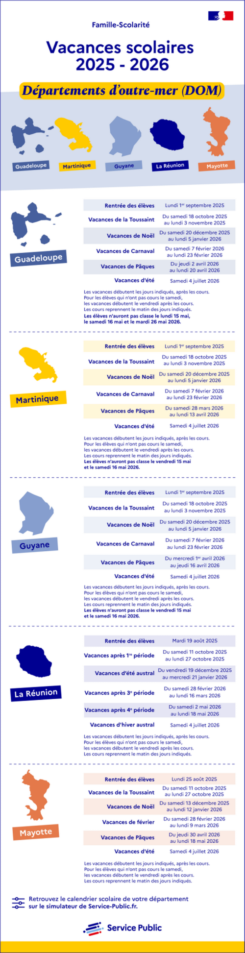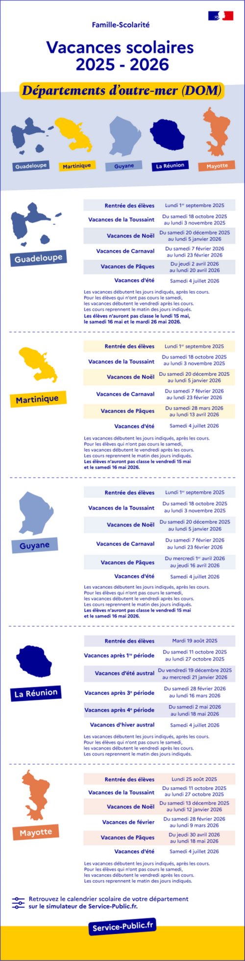 Le calendrier 2026-2027 pour les départements et régions d’outre-mer n’est pas encore connu .